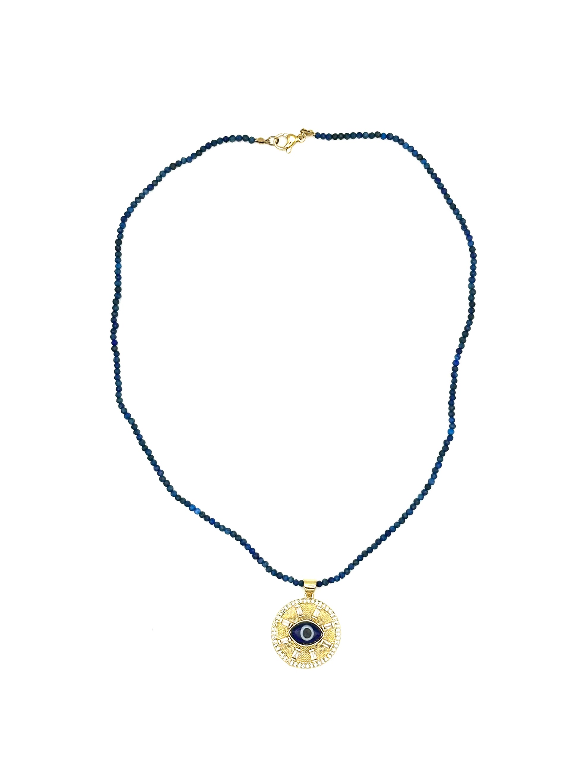 Gargantilla con minicristales swarovski color azul intenso y colgante con ojo turco